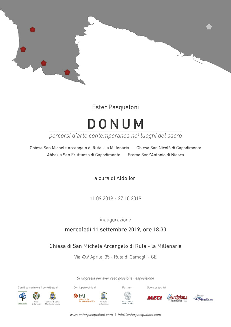 DONUM percorsi d’arte contemporanea nei luoghi del sacro 11 settembre 2019 Invito “DONUM percorsi d’arte contemporanea nei luoghi del sacro” scarica PDF Comunicato stampa “DONUM percorsi d’arte contemporanea nei luoghi del sacro” scarica PDF